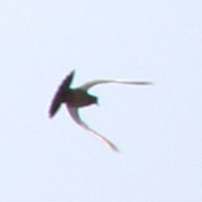 写真のなぞの飛行物体を拡大してみました。良く見ると鳥が羽ばたいて